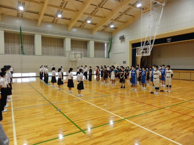 7月16日に、奥能登大会を前に、これまで部活動に頑張ってきた3年生を励まそうと激励会を開催しました。これまで目標にしていた県体、県コンクール、能登地区大会が中止となり、ほとんどの部は、この18日、19日の奥能登交流大会を最後に中学校の部活動を終えることになります。3年間の部活動の集大成として迎える奥能登交流大会、最終練習日、演奏会を前に、生徒会が中心となって応援のエールを行いました。