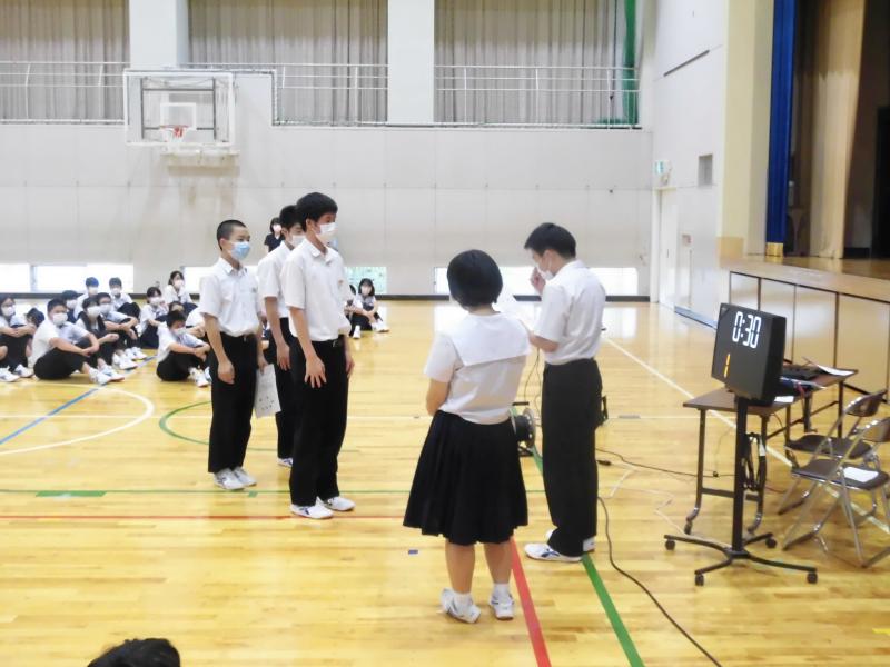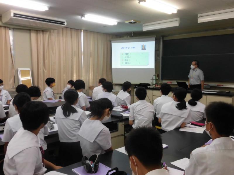 語先後礼や話す人の方を向くなど、学校生活で日頃から求められていたことが、社会生活の中でも求められていることが分かったと思います。自分から明るく挨拶をするをはじめ、言葉遣い、敬語を使う、時間を守るなどができているか、学校生活での自分の姿を振り返り、求められるマナーを当たり前にできるようにして、9月30日の職場体験に臨みましょう。