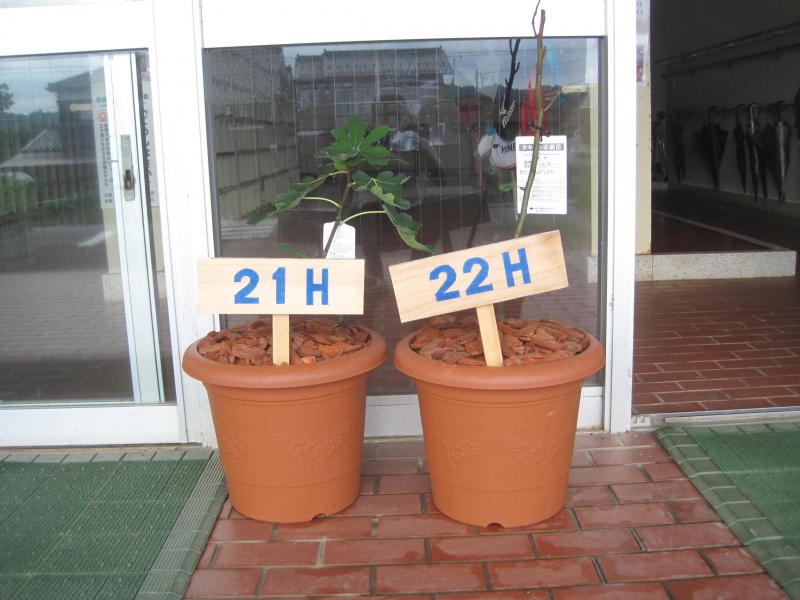 穴中タイムで選んだ「学級の木」が玄関に置かれています。この木は、「緑の募金」による学校緑化に対する公募があり、子供たちと一緒に成長する学級のシンボルとなる「実のなる木」を植えたいと応募(補助金交付願い)したところ、その趣旨に賛同していただき、各学級に贈ることができました。実(み)はすぐにはならないものもありますが、しっかりと育てていきたいと思います。