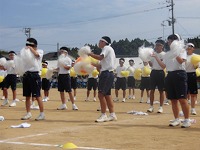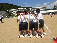 工夫されたゲームに生徒は大盛り上がりで,体育祭に向けての団結を強められたようです。