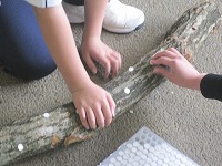 原木の穴あけ作業では,すぐに慣れて上手に作業を行っていました。
