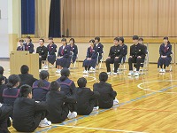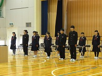 穴水中学校の平成29年度前期を担う13名が,自分ができること,したいと考えることを全校生徒に伝えました。