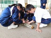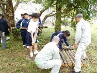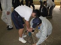 原木の穴あけ作業では,人生初のドリルにドキドキしながら挑んでいた生徒も,すぐに慣れて上手に作業を行っていました。