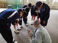 最後に「自問清掃」についての指導がありました。 穴水中学校では清掃を開始する前に5分間の「自問」の時間があります。 その5分間fは,きょう一日の自分の生活を振り返るための時間です。その後,10分間の清掃があります。 自問清掃の時間は,いっさいしゃべりません。 しゃべりたい気持ち,さぼりたい気持ちをがまんし,自分の心と学校を磨きます。
