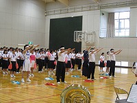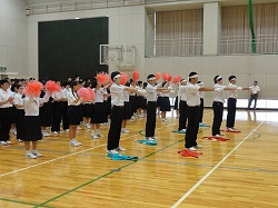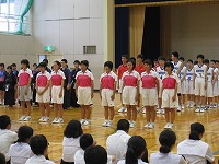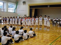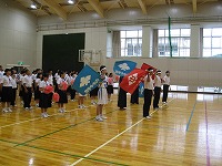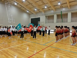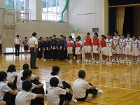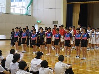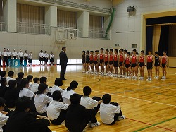 今週末はいよいよ県体です。 体育館では,出場する選手の紹介と部長による抱負,校長先生からの激励の言葉,吹奏楽部による応援メロディーが響いていました。