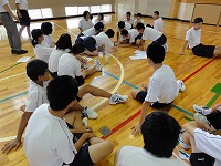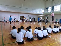 夏休み最後の日曜日,1年生の親子行事が本校体育館でありました。 今年は「親子対抗ソフトバレーボール大会」です。 暑い体育館の中で,熱い親子の戦いが繰り広げられました。