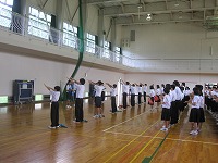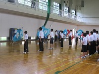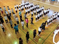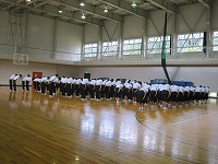 北信越大会へは,ソフトテニス部,相撲部が出場します。 生徒会代表からは「今までの練習の成果を発揮して,悔いの残らないようにがんばってきてください。」との応援を,校長先生からは「ハイレベルな戦いが待っているけれども,みなさんは十分な力を持っています。」と,励ましの言葉をいただきました。 その後,応援団による力強いメッセージと応援で,穴中全員が心を一つにして,北信越大会に出場する選手にエールを贈っていました。