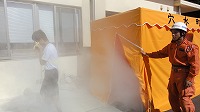 中学校生活最後の親子行事は,「親子防災教室」となりました。 残暑厳しい中,穴水消防署の方のご協力をいただき, 煙・救助訓練体験や,親子消火訓練リレー,アルファー米の試食など,いざというときに役立つ経験をたくさんすることができました。穴水消防署の隊員の皆様,大変貴重な体験をありがとうございました。 これを良い機会として,災害に対する意識を高めていけたらいいですね。