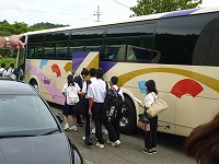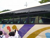 ワクワク,ドキドキ・・・ 団結式を終えたあと,少し緊張しながらも嬉しそうな表情でバスに乗りました。