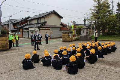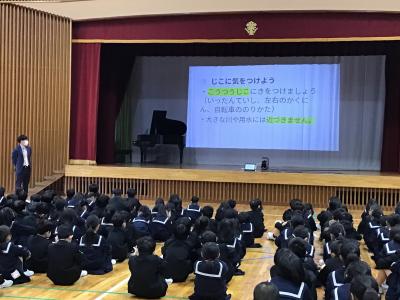 4月22日(月)、交通安全教室が開かれ、1.3年生が寺井警察署・能美市街頭交通推進隊・見守り隊の方々のご指導と上田自転車商会さんのご協力を得て、交通安全に関する学習を行いました。学んだことを日常生活にしっかりといかして、さらに判断力と実践力を高め、事故にあわない・事故を起こさないよう安全に行動していきましょう。