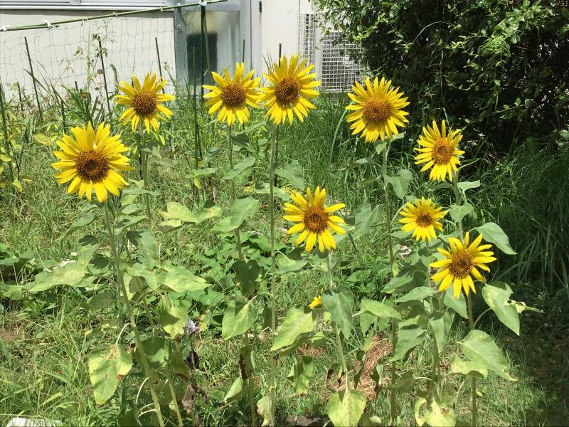 毎日暑い日が続きますが、中庭のひまわりがさきました。