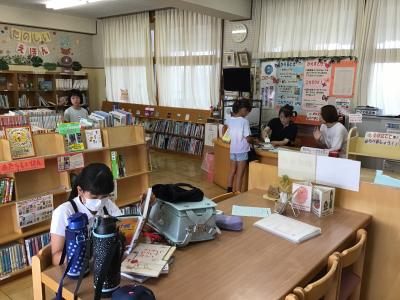 夏休み、図書室開放日には何人かの子が来室し、本を返し、借りていきました。