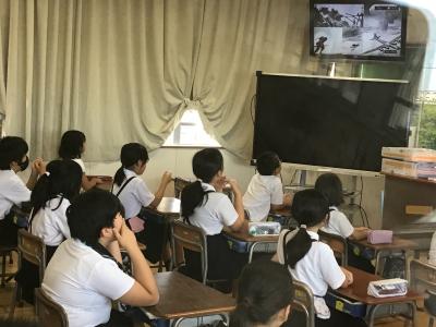 平和集会は6年生の発表は各教室でリモートで行い、全校で「平和の子ら」の合唱だけ体育館に集まって行いました。