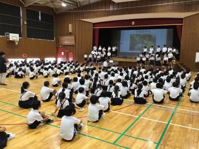 8月9日、暑い日が続く夏休みで熱中症を心配する中、全校登校日を行いました。