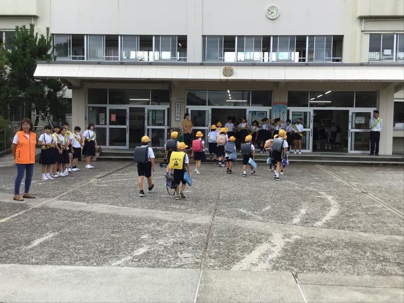 2学期がはじまり、学校、地域、能美市で連携している挨拶運動、「グッドマナーキャンペーン」を行っています。