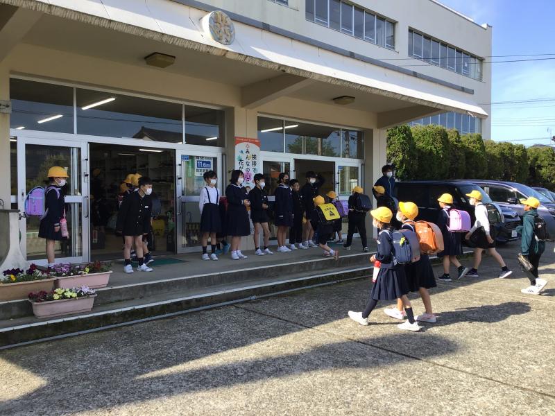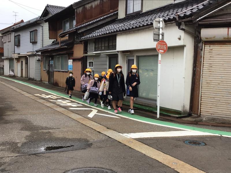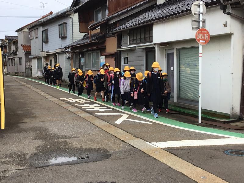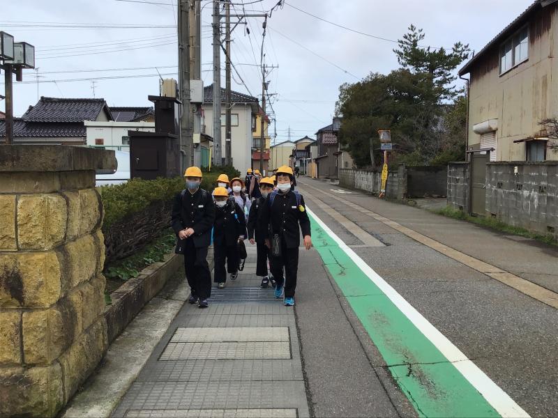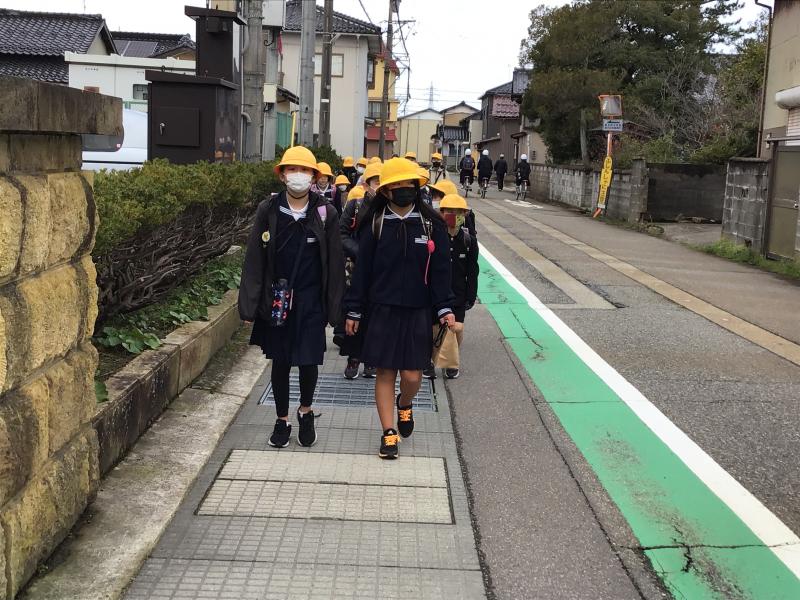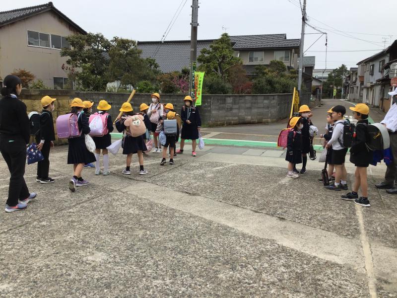 1年生は学校の近くの道路を実際に歩いてみて、安全な歩き方を学びました。