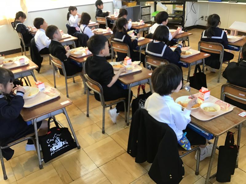 1年生にとって小学校での初めての給食です。準備も待つことも上手でしたが、食べることもとても上手でした。