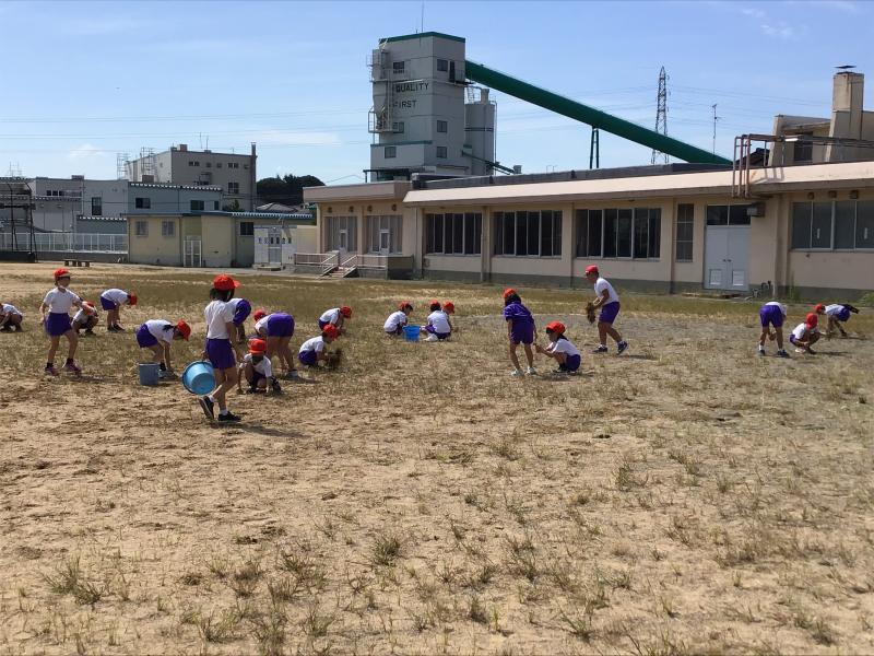 9月25日のPTA奉仕作業で運動場がとてもきれいになりました。運動会に向けてあとは学校の中で仕上げていきたいと思います。先陣を切って2年生が運動場の草むしりをしてくれました。競技も大事ですが、環境の準備もみんなで協力してやっていきます。