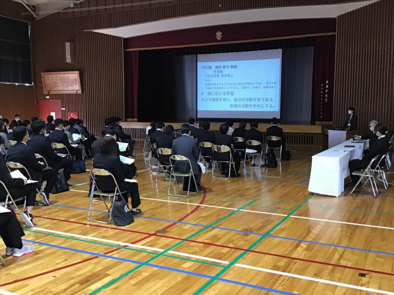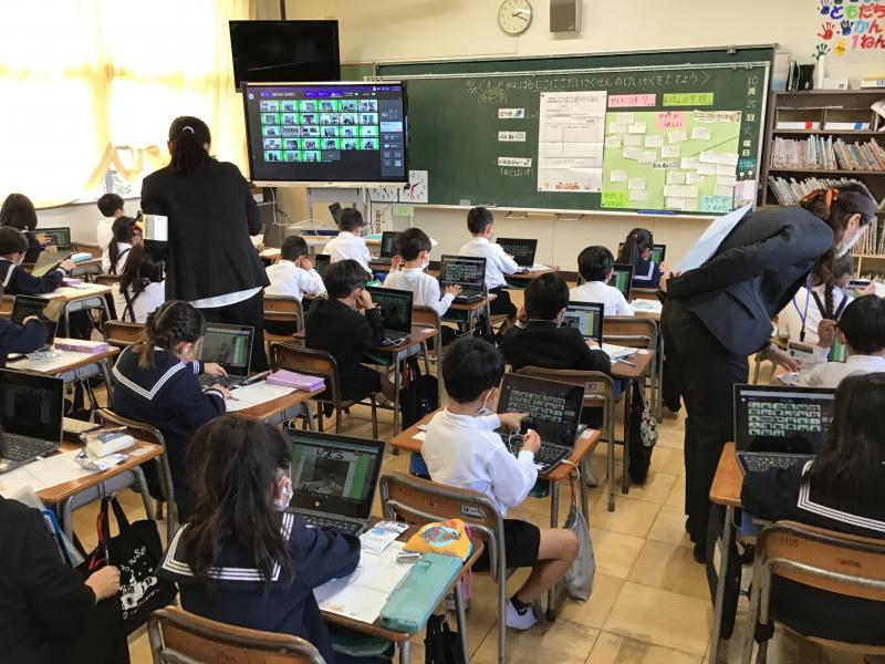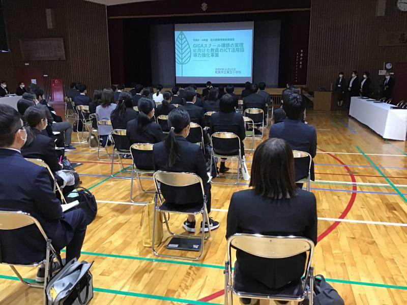 10月25日に、GIGAスクール構想の実現に向けた教員のICT活用指導力強化事業・公開研究会が開催されました。県内から多くの先生方が参観されました。2年間粟生小学校で行ってきたICTを活用した授業や取組を紹介しました。当日駐車場の案内に地域の方がご協力してくださいました。保護者の皆様、地域の皆様、ありがとうございます。