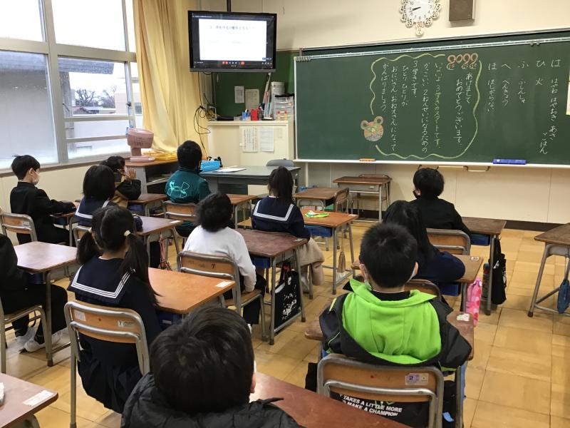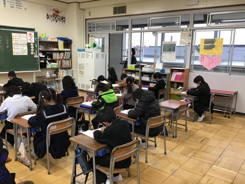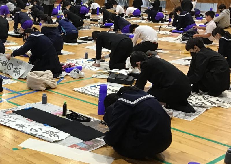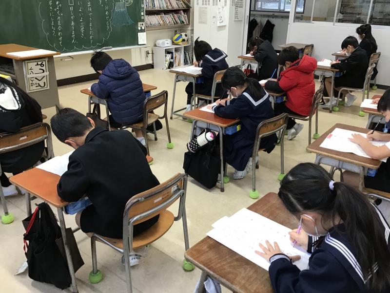 始業式の後、書初め大会が行われました。4~6年生は体育館で、1年~3年生は教室でしました。静かに集中してできました。