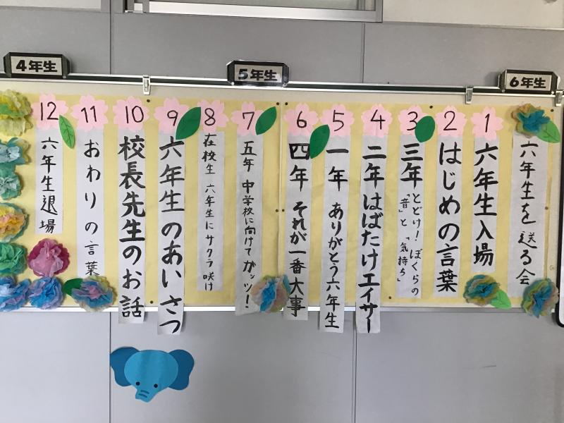 明日はいよいよ6年生を送る会です。無事できるのか、どきどきしましたが、今日は各学年リハーサルをすることができました。明日が楽しみです。