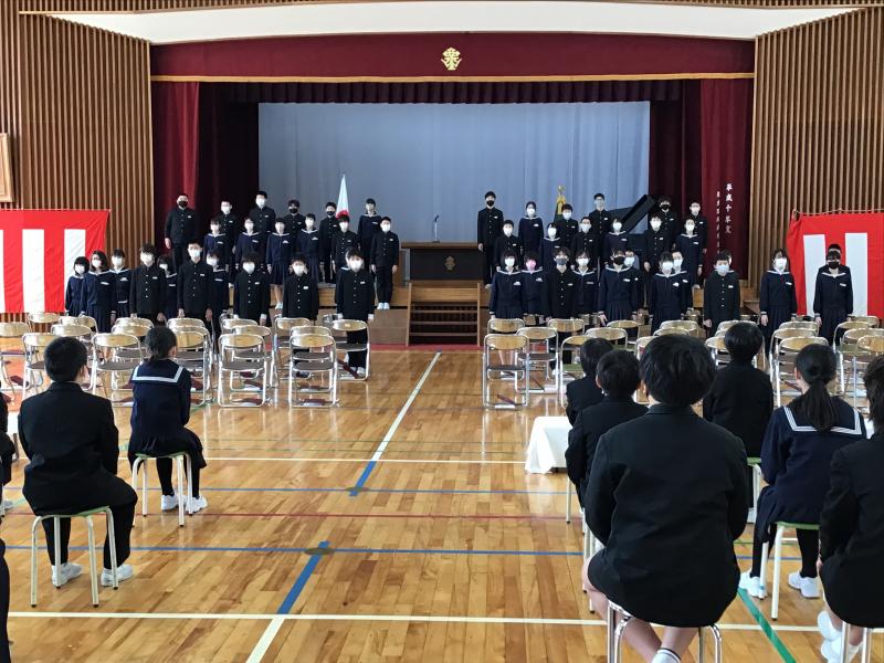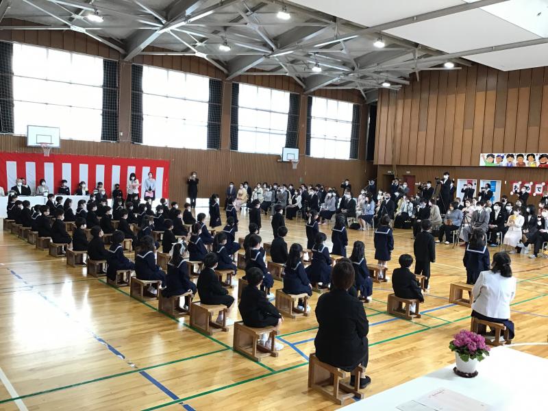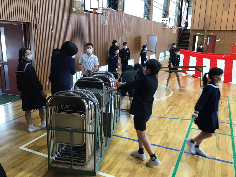5年生が準備をし、保護者の代わりに保護者席に座り、明日の卒業式の練習をしました。明日はもっとすばらしい姿をおうちの方にみせてくれるでしょう。おめでとう、6年生。