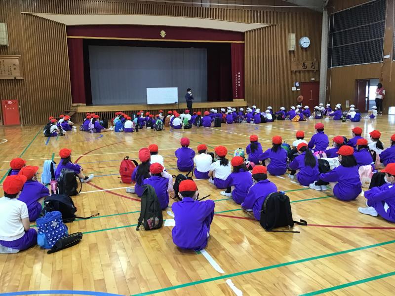 まずは3,4年生が体育館に集まり、話をきいてから、丘陵公園にむかいました。長い距離、がんばるよ!