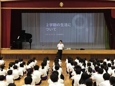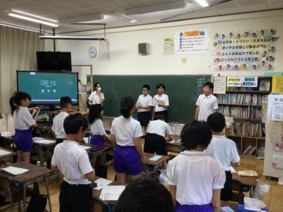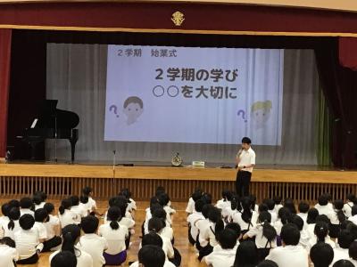 9月1日(月)2学期始業式が行われました。猛暑日となったこの日、グッドマナーキャンペーンも行われ、児童は地域の方と挨拶を交わしながら、元気に登校しました。教室では、仲間との再会を喜び合い、夏休みの思い出を笑顔で語る様子が見られました。始業式では、学校長及び主任教諭の話をしっかりと聴いて2学期のめあてを確認し、最後に校歌を歌って締めくくりました。2学期も「自分から・みんなで・学びを楽しむ」姿、そして、「うれしい・たすかった・ありがとう」のあたたかい言葉がいっぱいの粟生小学校をめざしましょう。