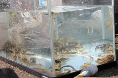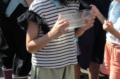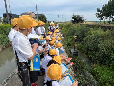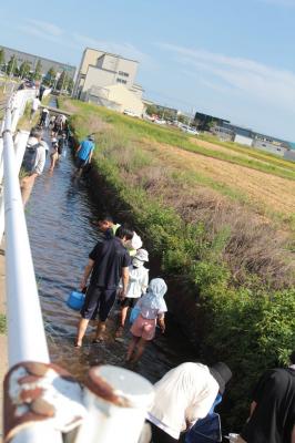 6日(土)午前8時から、恒例のトミヨ観察会と熊田川清掃が開催されました。今年は講師に「どうぶつの守」東出代表と石川県立大学の一恩教授をお迎えし、粟生小・寺井小・浜小からの参加者(9家族)で活動しました。用水は昨年より土砂等の堆積などが少なかったのですが、参加者は次々にエビやカニ、アメリカザリガニ、ドジョウ、スナヤツメなど、10種類を超える多くの生物を捕獲しました。トミヨも最終的に6匹発見!東出代表からの生物の名前や特徴等についての説明を真剣に聞きながら、能美市の自然の豊かさをあらためて実感し、今後も美しい自然環境を守ろうという気持ちを抱きました。「粟生校下健やかな青少年を育てる連絡協議会」の皆さまにも応援をいただき、ありがとうございました。