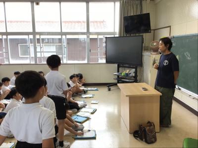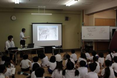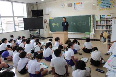 3日(金)、3年生が総合的な学習の時間に「トミヨ学習会」を行いました。講師は、先月開催されたトミヨ観察会で講師を務めてくださった東出さん(どうぶつの守代表)です。まず、トミヨの生態調査の見学に行き、トミヨをはじめ熊田川に生息している手長エビやスナヤツメ等を観察しました。その後学校に戻って、さらに詳しくお話を伺ったり質問に答えていただいたりして、トミヨや他の生物の生態、それら取り巻く環境について、とても興味を持ったようです。児童から次々と質問が出て、東出さんも驚くと同時に大変喜んでいらっしゃいました。めざせ!トミヨ博士