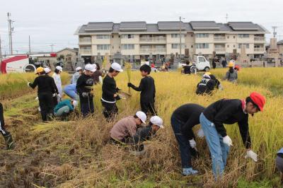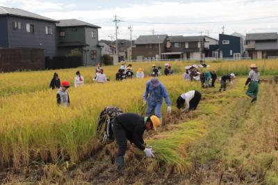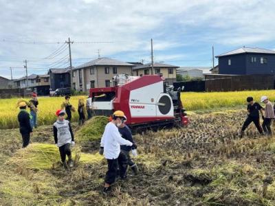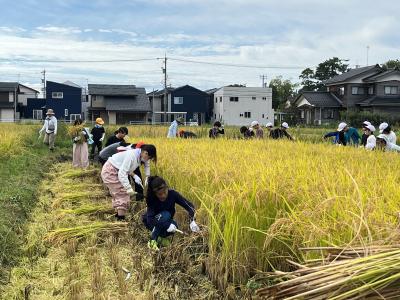 雨天のため延期になっていた5年生の稲刈り体験学習が、19日(金)秋空の下で行われました。前日までの雨のため、ぬかるみに足をとられながらも、地域の米多さんと佐々木さんにご指導をいただきながら一生懸命取り組みました。児童は、声を掛け合い助け合いながら最後までやり抜き、収穫の大変さとともに達成感を味わいました。そして、あらためて農業の大切さと食のありがたさを学びました。