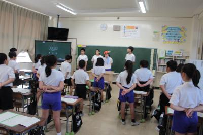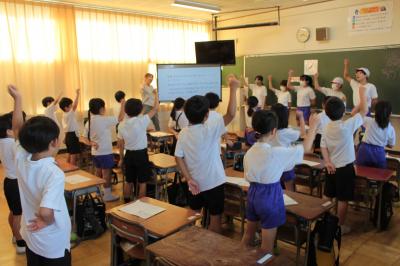 10月11日(土)の運動会に向けて、演技・競技の練習と同時に、応援練習も始まりました。5・6年生の赤組・白組の応援団が放課後も練習しています。これまで、朝自習の時間に、6年生が各クラスに出向いてオリジナル応援歌や手拍子、掛け声などを教えています。いよいよ体育館や運動場での全体練習が始まります。「一致団結」粟生っ子、がんばれ!