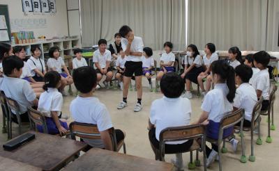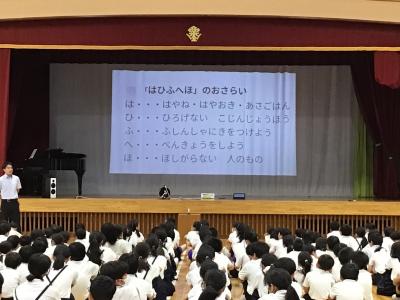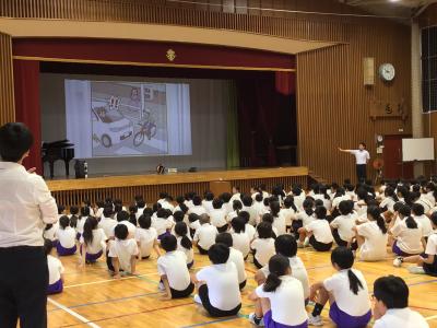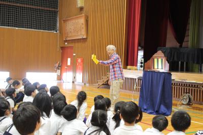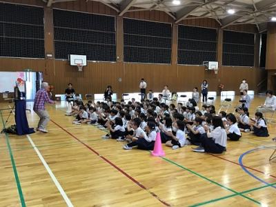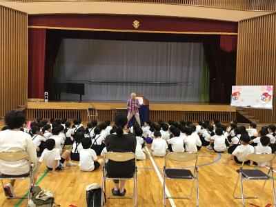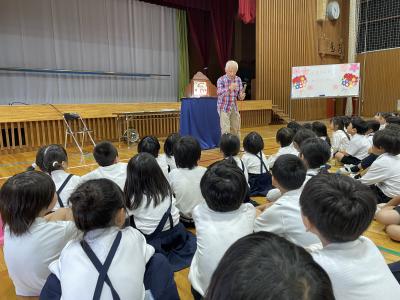 5月28日(水)3限目に、PTA教養講座「のまりんのお話会」が開催されました。参加者は1・2年生と保護者で、今年で18回目を迎えます。始まってすぐに歌、紙芝居、手遊びと、どんどんのまりんの世界にひき込まれていき、会場には笑顔があふれました。楽しくて元気が出る、そして心温まる幸せな時間をともに過ごせたことに、心から感謝いたします。PTA教養委員会の皆様、ご準備・進行等をありがとうございました。のまりん先生、また来てください。