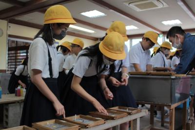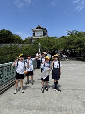5月29日(木)30日(金)に6年生が修学旅行に出かけました。一日目は、越前和紙の里‣卯立の工芸館・めがねミュージアム・さばえSDGs推進センター・永平寺・丸岡城を訪れ、福井県の歴史や文化・産業を見学したり体験したりしながら学びを深めました。加賀市の宿では、宿泊のマナーを学び、友達との交流や美味しい食事を楽しみました。二日目は、初めに卯辰山・玉兎ケ丘公園を訪れ、「平和の子ら」の像の前で平和への願いを込めて「平和の子ら」を歌いました。その後、グループで金沢市内自主プラン・21世紀美術館で、金沢の魅力を再発見しました。大型バス1台での移動となり、移動中はレクレーション係が活躍しました。これまでの学習を深め、福井・金沢のよさ、そして仲間のよさを発見することができた充実した二日間でした。