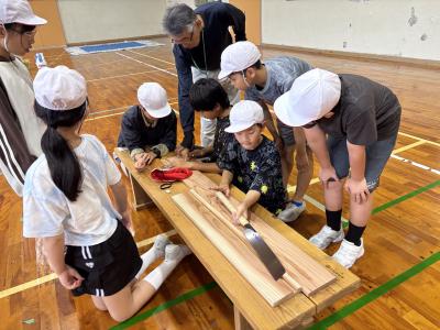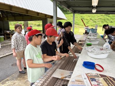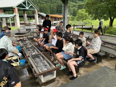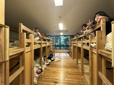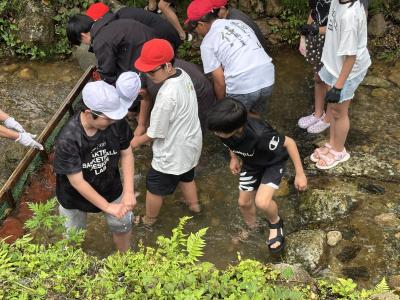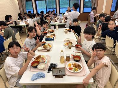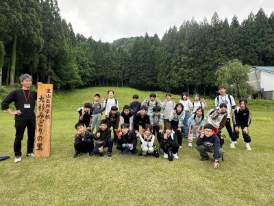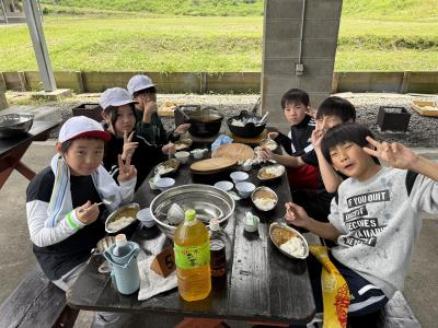 6月11日(火)~12日(木)に「大杉みどりの里」で5年生が合宿を行いました。初日は小雨が降りましたが、仲間と協力し、フォトスタンド作り、イワナつかみ、夕べの集い(長田町小学校6年生との交流)、キャンドルサービス等に元気に取り組みました。どの活動にも笑顔があふれ、思いやりのある行動もたくさん見られました。2日目は好天に恵まれ、朝の集う、ウォークラリー(野生動物にも出い、大興奮!)、カレー作りを満喫しました。カレー作りでは後片付けに苦戦しましたが、心に残る貴重な体験となりました。所の皆さま、大変お世話になりありがとうございました。