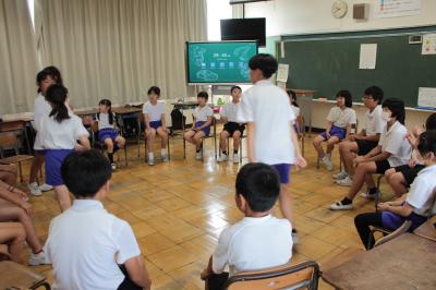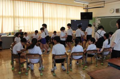 7月4日(金)2時間目に、児童会運営委員会の企画による全校たてわり遊びが行われました。児童は12のグループに分かれて、それぞれの教室で「なんでもバスケット」に仲良く取組み、交流を深めました。初めの自己紹介では緊張した様子も見られましたが、だんだんと笑顔があふれ、様々なお題(「〇〇が好きな人!」「〇月生まれの人!」など)でゲームを楽しみ、振り返りまでしっかりと行えました。