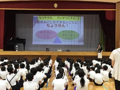 7月18日(金)、令和7年度1学期終業式を行いました。朝から気温が上昇し暑さが厳しい日となりましたが、体育館に参集し、学校長・生徒指導主事・情報委員会の話を聴いて、夏休みの過ごし方について考え、校歌を斉唱して1学期を締めくくりました。「自分から・みんなで・学びを楽しむ」をスローガンに頑張ってきた粟生っ子のみんなが、夏休みもめあてをもって元気に過ごし、2学期を笑顔で迎えられますように。
