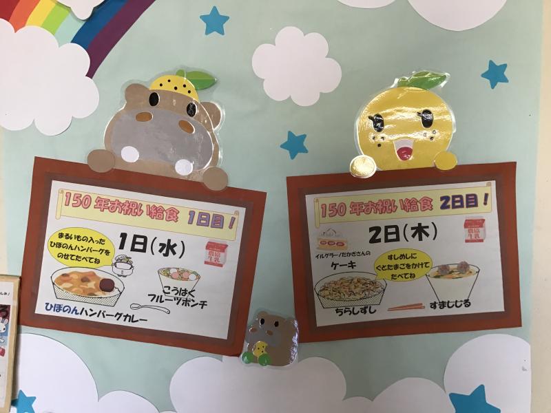 創立150周年をお祝いして、11月1日と2日はお祝い給食です。