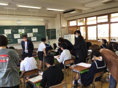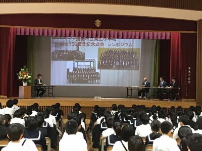11月2日、150周年当日の午前中は授業参観です。保護者はもちろん、地域の方も来てくださいました。中には廊下に飾ってある卒業写真を見に来られたかたもいました。
