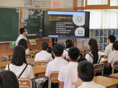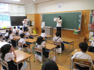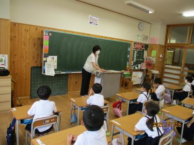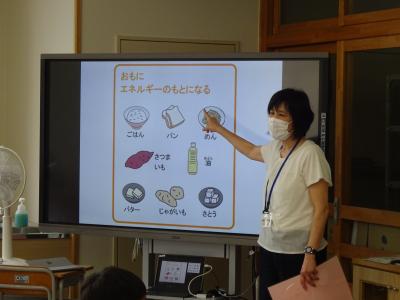 7月6日(火)1年生と3年生が学級活動の時間に、栄養教諭北出宏予先生と一緒に食について学びました。1年生は、「のこさずたべると、どんないいことがあるかな?」、3年生は「食べよう!朝ごはん」についてです。今晩、お家で学んだことのお話をしてくれていると嬉しいです。