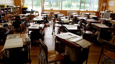 7月7日(水)11:00、県民一斉防災訓練が行われ参加しました。子どもたちは、地震を想定した身の安全を守る「3つの安全行動(しゃがむ・隠れる・じっとする)」を行いました。