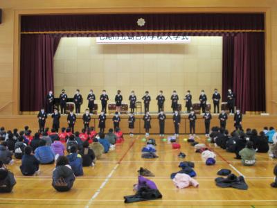 2023年3月16日 17時00分3月16日(木)第5回令和4年度卒業証書授与式を行うことができました。今年は6年生と一緒に4・5年生も参加し,1~3年生はオンラインでの参加となりました。卒業生の起立,礼,着席,話を聞く姿勢,卒業証書を受け取る姿,別れの言葉,合唱など,どれも大変立派でした。最高学年として朝日小学校を引っ張ってきた6年生の力を再確認できました。教室では6年生との別れを悲しむ在校生の姿も見られたようです。卒業生の素晴らしい姿を見ることができた4・5年生は来年の朝日小学校を引っ張っていってくれることでしょう。中学校でも常に限界突破し続ける姿勢を忘れずに頑張ってください。応援しています。