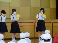 あさひ子ども園の先生方にも,児童たちが考えた10個の質問に答えていただきました。元気な声であいさつをしたり,質問をしたりすることができました。あさひ子ども園に通っていた児童もおり,懐かしい様子で園内を見渡していました。その後は,あさひ子ども園の子どもたちと一緒に縄跳びをしたり,ダンスをしたりしました。初めは少し照れくさそうにしていましたが,縄跳びのコツや縄の結び方を教えてあげたり,一緒に喜んでいたりする姿も見られました!