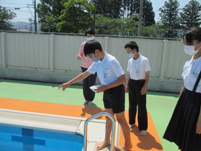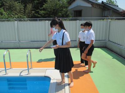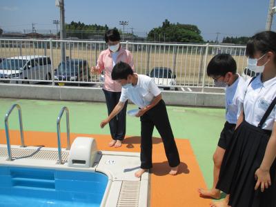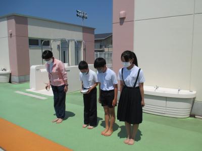 2021年6月11日 18時45分6月10日(木)児童会会長、副会長と共に、プールでの安全を祈願し、プール開きを行いました。その後、3年生がトップバッターで、プールに入りました。