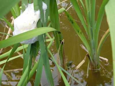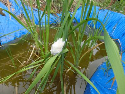 ビオトープにモリアオガエルの卵が!