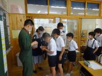 2022年6月3日 16時11分6月3日(金) 4年生の総合の時間に航空自衛官の成田さん、陸上自衛官の松村さん、広報官の山下さんの3人をゲストティーチャーにお招きし、自衛官のお仕事について教えていただきました。子ども達は目を輝かせて話を聞いていました。