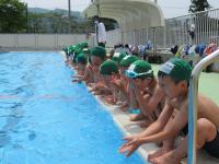 2022年6月20日 17時30分6月20日(月) 6年生がプールでの安全を祈願し、プール開きを行いました。その後、そのまま6年生がプールに入り、楽しんでいました。