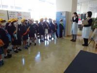 七尾特別支援学校の3・4年生が帰る頃,外は土砂降りの雨でした。そこで,朝日っ子は「七尾特別支援学校の3・4年生が雨に濡れないようにするために,傘をさしてあげよう。」とお互いに声をかけていました。最後の最後まで,相手を思いやる姿を見ることができました。