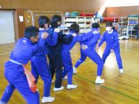 体育館は今も立ち入り禁止のため,できていなかった体育ですが,玄関スペースを広くしたり,会議室の物を動かしたりして少し広い場所を確保し,再開しました体育館用具庫から,玄関スペースでも使えそうな用具を先生達で相談して出してきました。マット,ラダー,なわとびなど,いつもの体育よりも大きな動きはできませんが,体を動かすことができると気持ちも晴れやかになりますね体育の最初にしている体つくり運動も,久々でしたが,3年生とても上手でした友達と一緒にタイミングを合わせてなわとびを跳ぶのもバッチリおみごとです