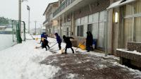 2022年1月14日 11時47分昨日、今日(13日・14日)とまとまった雪が降りました。6年生が2日連続、玄関付近の雪をどけてくれました。ありがとう!また、今日は早朝から徳サン工業さんや地域の方が敷地内や通学路の雪をどけてくださいました。本当にありがとうございます。